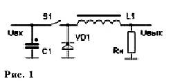 Их можно использовать, применив понижающий трансформатор на выходе приемника, как это сделано в трансляционных громкоговорителях. Но найти подходящий трансформатор тоже проблема, от больших и тяжелых «трансов» отказываются даже в блоках питания современной радиоэлектронной аппаратуры, заменяя их полупроводниковыми импульсными инверторами. Может быть, и нам поступить так же? Посмотрим, как работает понижающий импульсный инвертор постоянного тока (рис. 1).