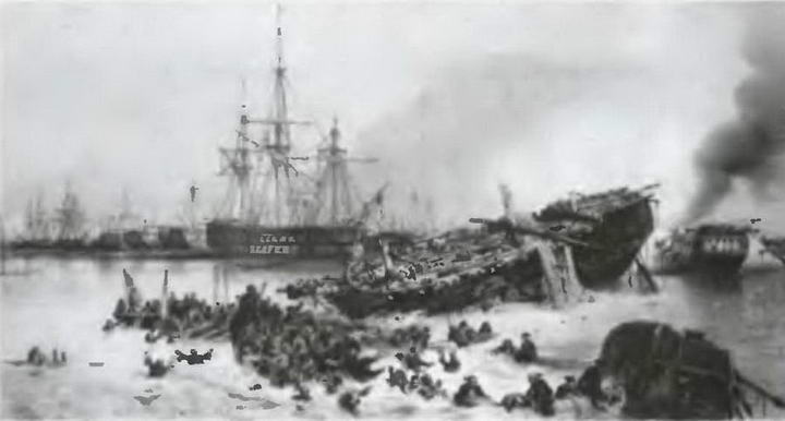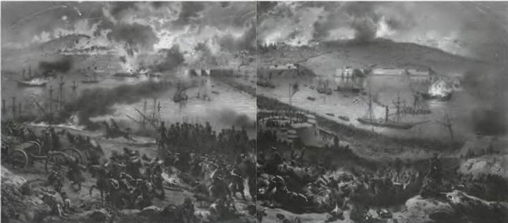 В сентябре 1854 при содействии 89 боевых кораблей и 300 транспортов англо-французская армия высадилась в Крыму, нанесла поражение русской армии на реке Альма и блокировала Севастополь. 13 (25) сентября началась знаменитая оборона Севастополя.