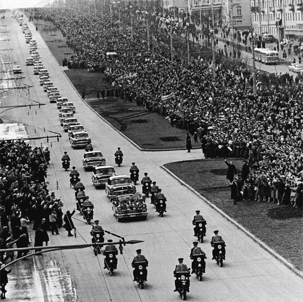 Юрий Гагарин, Герман Титов, Григорий Нелюбов на Красной площади (30 марта 1961 г.)