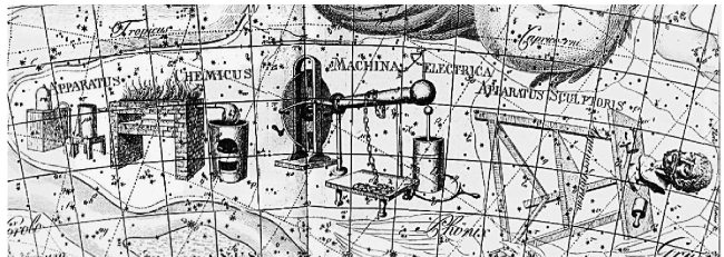 Рис. 1.4. Изображения некоторых созвездий, названных в честь технических устройств. Фрагмент карты из атласа Иоганна Боде (1801).