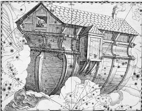 Рис. 1.6. Примеры «христианских» созвездий из атласа Ю. Шиллера: «Ноев ковчег» и «Святая Мария Магдалина», введенные автором взамен соответственно Корабля Арго и Кассиопеи.