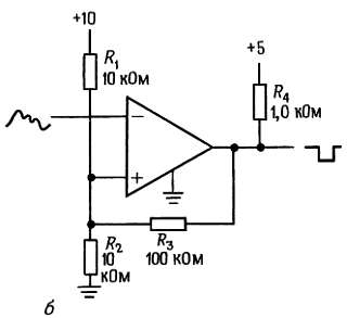 Очень часто бывает нужно установить, какой из двух сигналов больше, или определить, когда сигнал достигнет заданного значения. Например, при генерации треугольных колебаний через конденсатор пропускают положительный или отрицательный ток, полярность тока изменяют в тот момент, когда амплитуда достигает заданного пикового значения.