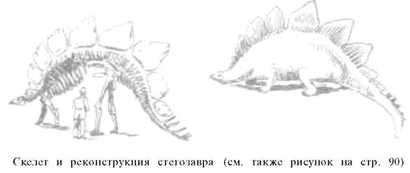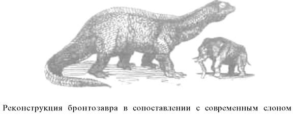 В эту Юрскую эпоху — так сказать, «среднее царство» пресмыкающихся — они достигли своего наибольшего расцвета. Палеонтология — наука об ископаемых останках — предъявляет нам в эту эпоху полный альбом типов сухопутных рептилий. Лишь немногие из них действительно «пресмыкались», т. е. ползали на брюхе. Тут были травоядные и хищные, малые и большие; были и грызуны, и насекомоядные, и кошкообразные, и слонообразные. Именно в эти долгие миллионы лет Землю населяли великаны — бронтозавры и атлантозавры, исчислявшие свою длину десятками метров, которые могли бы использовать наши трех — и четырехэтажные дома в качестве внутриквартирной мебели.