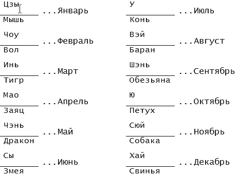 И месяцы также имели свои иероглифы, но уже из другого, двенадцатеричного цикла — «Земных ветвей».