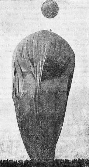 Рис. 6. Первый подъем большого шара-зонда ("Аэрофил") во Франции. (Со старинного рисунка.)