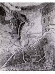 Древнейшее на Руси изображение святого Георгия. Фреска в Староладожской церкви (конец XII века).