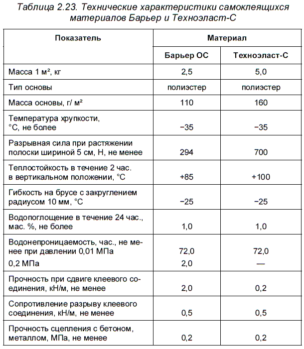 Основные технические характеристики материалов приведены в табл. 2.23.
