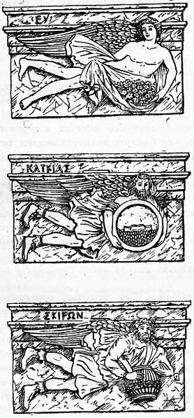 Рис. 45. Древние барельефы, изображающие ветры на "Башне ветров" в Афинах.