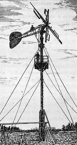 Конечно, вопрос об использовании энергии ветра поставлен человеком уже давно. Простейшее его разрешение — ветряная мельница. Уже Дон-Кихоту пришлось сражаться с ветряными мельницами, а это произведение написано в начале XVI века. Полагают, что ветряные мельницы изобретены в начале XII века. Много старше, конечно, идея использования энергии ветра для парусного флота, знакомого всем древним народам.