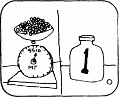 …положить 55 отобранных пилюль на одну чашу весов и взвесить их. Предположим, что пилюли весили бы 5510 мг, или на 10 мг больше, чем следует. Тогда мисс Блек заключила бы, что среди отобранных пилюль имеется 1 пилюля с повышенной дозой лекарства, а ровно 1 пилюля была извлечена из первого флакона.