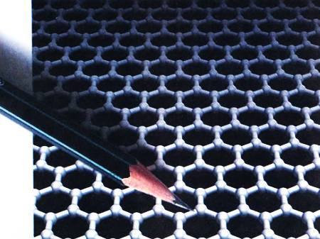 Графен же (graphene, С62Н20) представляет собой тончайшую — в один атом толщиной! — пленку из тех же атомов углерода, объединенных в строгую гексогональную геометрическую структуру. Этот материал был получен исследователями в 2004 году фантастически простым образом. Ученые провели мягким графитовым карандашом по бумаге, а затем «промокнули» ее клейкой лентой, как криминалисты в фильмах, когда снимают отпечатки пальцев преступников на месте происшествия. В результате на пленке остался тончайший слой углерода.