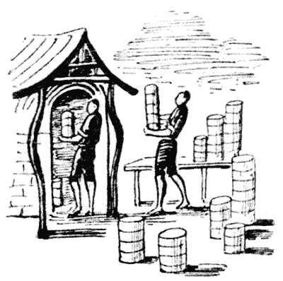 Маленькие чашки ставились по нескольку штук в каждую коробку. Для больших ваз были приготовлены целые столбики из коробок, поставленных одна на другую. Только нижняя коробка была с донышком, а остальные были просто глиняные круглые стенки, стоявшие одна на другой и слепленные вместе серой глиной.
