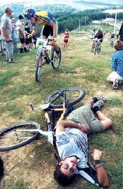 По правилам uphill'a, велосипедисты должны преодолеть 600 метров в гору. При этом не оговаривается, как именно. Этим-то и воспользовалась добрая половина участников, преодолевая особо сложные участки пути вприпрыжку, с велосипедом на спине. Первым финиша достиг Григорий Лялин из С.-Петербурга, который всю дорогу, несмотря ни на что, упорно жал на педали.