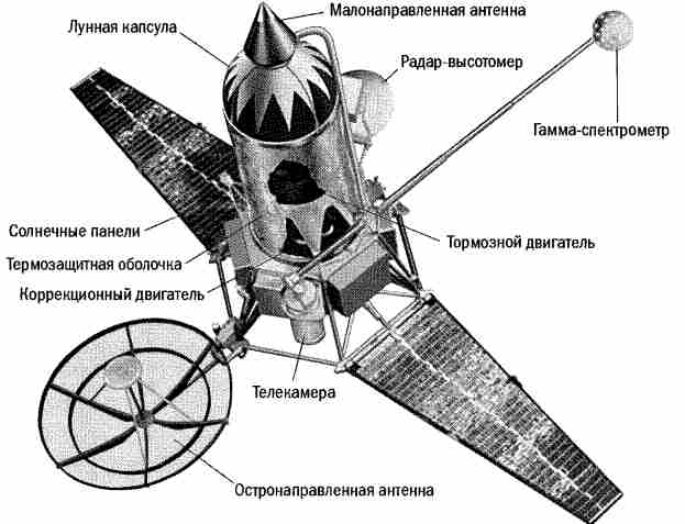 Рис. 1.10. «Луна-2» (СССР, 1959) — первый искусственный объект, достигший поверхности Луны. Масса зонда составляла 390 кг.