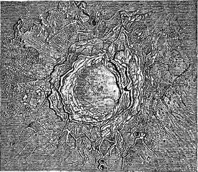 Рис. 1.18. Кратер Коперник. По рисунку Анджело Секки (1818–1878). Из книги: Henry Warren «Recreations in Astronomy», New York, Harper & brothers, 1879.