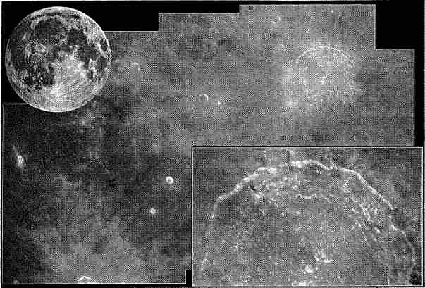 Рис. 1.19. Район кратера Коперник. Снимок космического телескопа «Хаббл». Рассмотреть более мелкие детали на лунной поверхности от Земли пока невозможно. Сравнивая этот снимок с предыдущим рисунком, мы видим, что опытный астроном — наблюдатель может поспорить по «зоркости» даже с космическим телескопом.