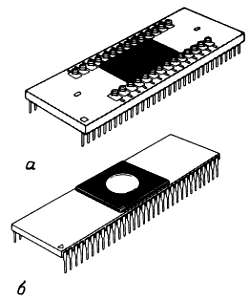 Рис. 11.33. Микроконтроллер с РПЗУ. а — 8-разрядный микроконтроллер с контактами для установки РПЗУ; б — 8-разрядный микроконтроллер со встроенным РПЗУ.