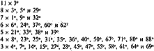 Некоторые углы, повторяющиеся с удивительной частотой на Бодмин-Муре, также появляются в моих обследованиях Бредон-Хилла, а другие оказались новыми. Я составил простую компьютерную программу для построения всех углов от 0° до 90° на основе их простейших отношений. Сразу же становится очевидным, что на самом деле востребованы только 45 отношений. Отношение для получения, скажем, угла в 20° (11:4) эквивалентно тому, которое требуется для угла в 70° (4:11).