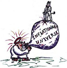 Существует некий люфт в терминологии, требующий уточнять понятия по мере углубления в предмет обсуждения. Что такое Большой взрыв? Многие понимают под Большим взрывом некое самое-самое начало расширения пространства. Можно было бы назвать Большим взрывом некий старт инфляции. Однако исходя из сказанного ниже этот «старт инфляции» теряет всякую определенность. Но в истории Вселенной есть совершенно четкий момент: окончание инфляции, связанное с ним «выгорание» поля-инфлатона и переход к горячей Вселенной, расширяющейся по закону Фридмана. Будем называть «Большим взрывом» именно этот момент — как только он произошел (а он происходит за очень короткое время), вселенная с ее огромной энтропией и большим будущим состоялась. Именно это и есть общепринятое определение Большого взрыва в среде профессиональных космологов. Однако, оно не общепринято среди популяризаторов науки, примером чего служит рисунок, обошедший недавно мировые средства массовой информации. Он иллюстрирует историю Вселенной, где Большой взрыв изображен неким ярким сферическим ореолом, предваряющим стадию инфляции. Но вернемся к процессу инфляции.