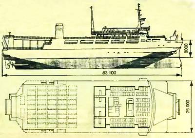 Это судно-катамаран служило паромом для перевозки пассажиров и автомобилей между островами. Машины размещались на вспомогательной и верхней палубах площадью 1530 и 720 м2 соответственно. В передней части судна находятся пять пассажирских салонов, где с комфортом размещаются 758 человек. Здесь же расположена и прогулочная палуба. Всего было построено 4 таких судна-парома.