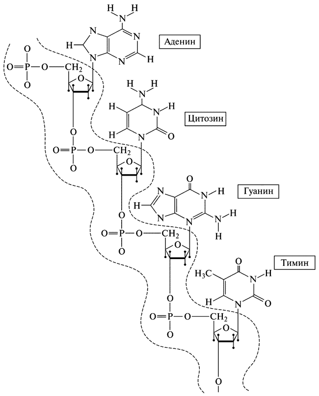 Рис. IX. Структура одноцепочной дезоксирибонуклеиновой кислоты (ДНК):