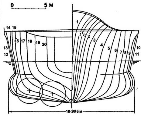 ТЕОРЕТИЧЕСКИЙ ЧЕРТЕЖ (проекция “корпус”) крейсера “ТАКАО”