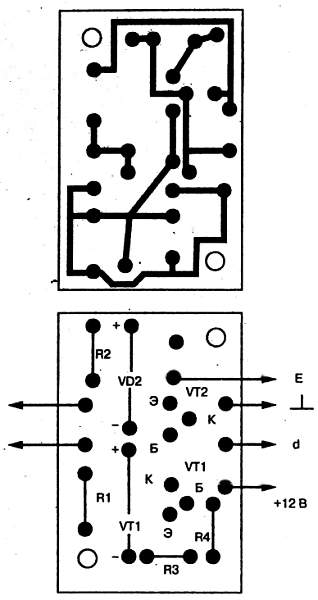 Размещение элементов схемы входного устройства на печатной плате показано на рис. 4.