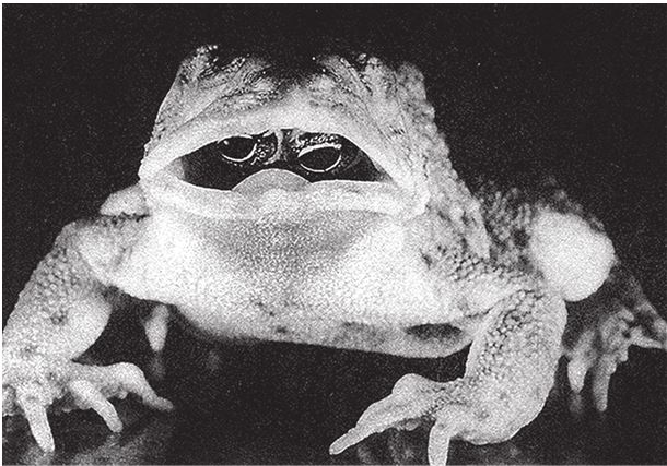 На первый из трех вопросов можно ответить положительно. Макромутации действительно происходят. Иногда потомство решительно, до боли в сердце не похоже ни на одного из родителей, ни на других представителей вида. По словам Скотта Гарднера, фотографа из газеты Hamilton Spectator, жабу, изображенную на рис. 3.2, нашли у себя в саду две девочки из города Гамильтона, который находится в канадской провинции Онтарио. У нее отсутствуют глаза на поверхности головы. Когда животное разинуло рот, рассказывал Гарднер, стало ясно, что оно все?таки реагирует на окружающее. Жабу отправили на ветеринарный факультет Гуэлфского университета для исследования, но сколько?нибудь подробного отчета я до сих пор не видел. Такие бедолаги интересны тем, что часто дают информацию о нормальном развитии эмбриона. Не все врожденные аномалии развития обусловлены генетикой – взять хотя бы побочные эффекты приема талидомида, – но многие таковы. Ахондороплазия, тяжелое заболевание, связанное с укорочением костей конечностей и приводящее к карликовости и искажению пропорций тела, связана с вариантом одного-единственного гена. Подобные значительные мутации – “макромутации” – иногда называют еще сальтациями. Как правило, вариант гена, являющийся причиной заболевания ахондроплазией, передает потомку один из родителей, но бывает, что болезнь развивается случайно в результате резкого изменения – должно быть, так этот вариант гена и возник когда?то впервые. Теоретически, хотя я очень сомневаюсь, что это могло произойти на самом деле, в каком?то одном поколении в результате такой же грандиозной мутации вытянутый нос тапира мог спонтанно вырасти до размеров слоновьего хобота.