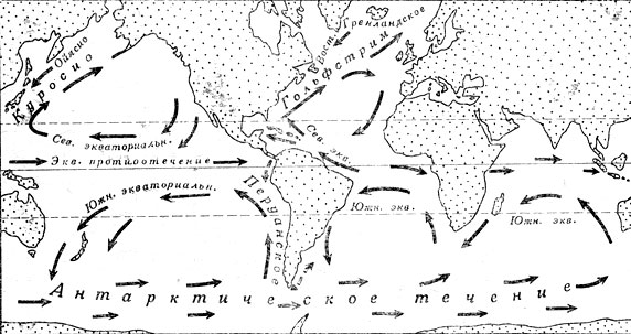 Купаясь в черноморской воде на ялтинском пляже, трудно даже представить себе, что частицы этой воды некогда омывали побережье Антарктиды или Гренландии или, может быть, вздымались огромными пирамидальными волнами в центре циклона у южной оконечности Африки. А между тем в этом нет ничего невозможного. Мировой океан со всеми его морями и заливами представляет собой неразрывное целое. Местами медленные, местами довольно быстрые течения связывают между собой самые отдаленные его части.