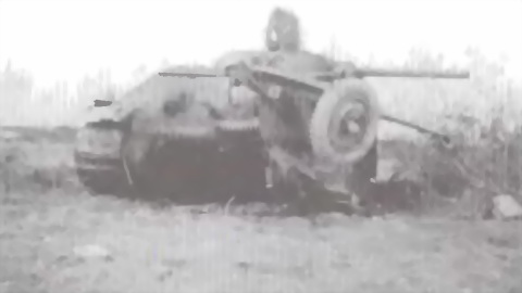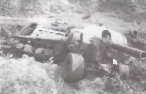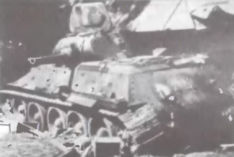Подбитый танк Т-34 3-го мехкорпуса с намотанной на гусеницы немецкой противотанковой пушкой