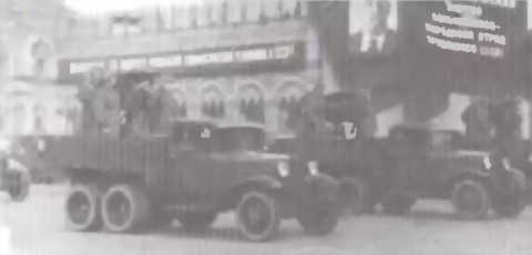 Счетверенные зенитные установки («комплексные пулеметы») на ГA3-AAA. Москва, 7 ноября 1938 г.
