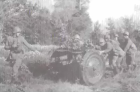 Артиллерийские тягачи А-20 «Комсомолец» буксируют 45-мм противотанковые пушки