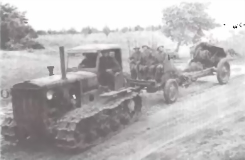 Трактор СТЗ-5 буксирует 122-мм гаубицу М-30