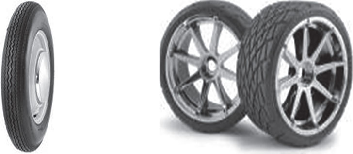 Рис. 23. Слева шина 1950 г, справа – современные шины (2012 г).