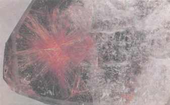 К этим переливчатым «глазастым» камням близки излюбленные коллекционерами кварцы с включениями — кристаллы, захватившие при кристаллизации мелкие кристаллики других минералов. Самые распространенные — иголки и нити рутила. Медно-красные, толстые, как штопальная игла, «стрелы Амура», подчас расходящиеся венчиком, или золотисто-соломенные, тончайшие «волосы Венеры» (на Востоке их считали священными волосками из бороды Пророка). Но «волосатики», так зовут подобные кварцы на Урале, могут включать не только рутил, но и тонкие, нежные иголочки гетита, серебристого антимонита или козалита, зеленые нити хлорита, шелковистые асбеста. Мелкие чешуйки слюды или гематита превращают кварц в мерцающий золотистый или зеленоватый авантюрин (в прошлом веке такие камни, бывшие в моде, называли салонным именем «собрание любви»). Необыкновенно красиво выглядят в прозрачном кварце и раухтопазе мелкие золотинки или правильные кристаллики пирита. А может быть, в связи с кварцем вы слышали таинственные слова «голубые лучи»? Эти хитрые лучи видны не всегда: они блещут лишь при определенном угле наклона. Их природу установили сравнительно недавно: выяснилось, что эффект сияющих, как тончайшие дождевые струи, лучей создают каналы, заполненные газом или жидкостью, своеобразные эффектные дефекты кристалла, расходящиеся веером от твердых включений, или создающие сеточку тончайших трещин при выпадении из состава высокотемпературного кварца некоторых примесей.
