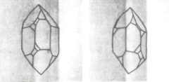 И вместе с тем кварц — один из самых необычных минералов. Это становится понятным при первом же внимательном взгляде на его кристаллы, те самые, наверняка, знакомые шестигранные призмы, отточенные по концам, как карандаши. Шестигранные? Значит, подобно бериллу, кварц компонует свои грани вокруг шестерной оси? Не будем торопиться. Внимательно рассмотрим заостренную, как пирамидка, головку кристалла. Обычно грани ее не равны: чередуются большие и маленькие. Большие чаще семиугольные и блестящие, маленькие — треугольнички с тусклым блеском. Кристаллографы, тщательно изучив огранку, установили, что головка кварца формируется двумя ромбоэдрами. Один разросся свободнее, вольнее, а второй оказался несколько «зажатым». (Изредка, правда, одинаковыми бывают все шесть граней головки; тогда они внешне совсем похожи на шестигранную пирамидку.)