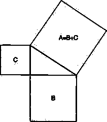 Рис. 2.1. Теорема Пифагора. Площадь квадрата, построенного на гипотенузе прямоугольного треугольника, равна сумме площадей квадратов, построенных на катетах. Вы можете попробовать проверить эту древнюю теорему, для этого существует много способов.