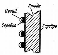Ты, конечно, спрашиваешь себя, как удается сделать подобную мозаику. Для этого на очень тонкую пластинку слюды напыляют крошечные капельки серебра. Затем поверх их осаждают пары цезия. Этот металл очень тонким слоем покрывает каждую капельку серебра. Так формируются эти микроскопические фотоэмиттирующие ячейки, хорошо изолированные друг от друга (рис. 193). На другую сторону пластинки наносят сплошной слой серебра.