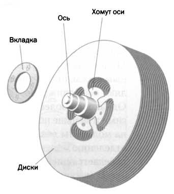 РИС. 1 Ротор турбины Теслы состоял из нескольких гладких дисков с расстоянием между ними в несколько миллиметров. Поток должен проходить по поверхности дисков, а затем выходить через выпускные отверстия.