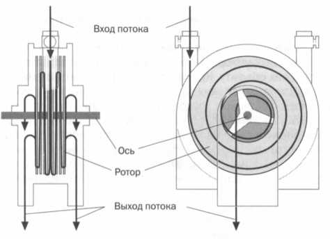Как получалось, что энергия потока заставляла вращаться металлический диск? Если поверхность диска гладкая и на ней нет лопастей и зазубрин, то логика подсказывает нам, что поток будет течь по диску, не приводя его в движение. Объяснение кроется в таких свойствах вещества, как адгезия и вязкость, которые мы упоминали ранее. Адгезия — способность к физическому сцеплению вместе разных молекул в результате действия сил притяжения. Вязкость представляет собой свойство вещества, противоположное текучести, и зависит от трения между молекулами. Эти два свойства комбинируются в турбине Теслы для передачи энергии от потока к ротору.