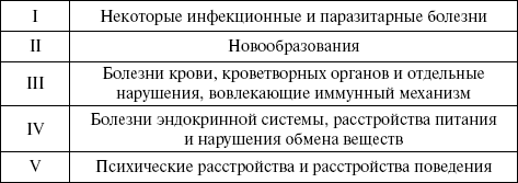 В МКБ-10 болезни распределяются по классам следующим образом (табл. 9).