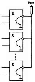 Рис. 15.4. Объединение элементов с открытым коллектором по схеме «проводное ИЛИ»