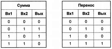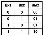 Итак, вспомним, что нам, собственно, нужно делать — а именно: воспроизвести таблицу сложения двоичных чисел, которая была показана для одноразрядных чисел в главе 14. Так как при сложении единиц получается двухразрядное двоичное число, то перепишем эту таблицу в двухразрядном представлении: