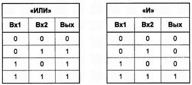 Сравним вторую таблицу с таблицей состояний для базовых логических функций (я их повторю, чтобы не пришлось листать книгу):