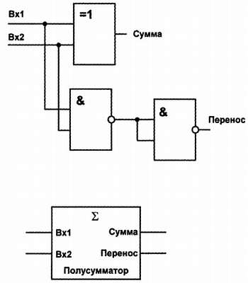 Рис. 15.6. Схема одноразрядного полусумматора