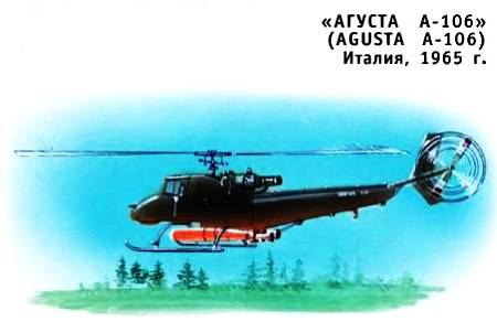 Этот легкий многоцелевой вертолет выпускался итальянской фирмой КОНСТРУКЦИОНИ АЭРОНАТИКЕ ДЖИОВАННИ АГУСТА. Первый полет он совершил в 1965 году. При конструировании были учтены основные требования военных. Но он с успехом работал и на «гражданке». Серийно выпускался до 1975 года, как общего назначения, так и для противолодочной борьбы. Для чего снизу могли подвешиваться две торпеды. Несущий винт — двухлопастный, со стабилизирующими стержнями.