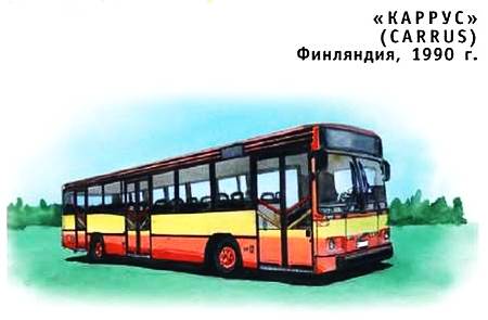 Финская кузовная фирма КАРРУС специализируется на изготовлении различного типа кузовов на базе известных автомобильных марок. Данная модель городского автобуса построена на шасси VOLVO. Высокое качество и долговечность финских автобусов достигается за счет применения нержавеющей стали на боковинах кузова и алюминия на панелях крыши. Передняя и задняя части изготовлены из прочного пластика. Кроме стандартного 12-метрового автобуса, фирмой выпускается еще и 18-метровый сочлененный.
