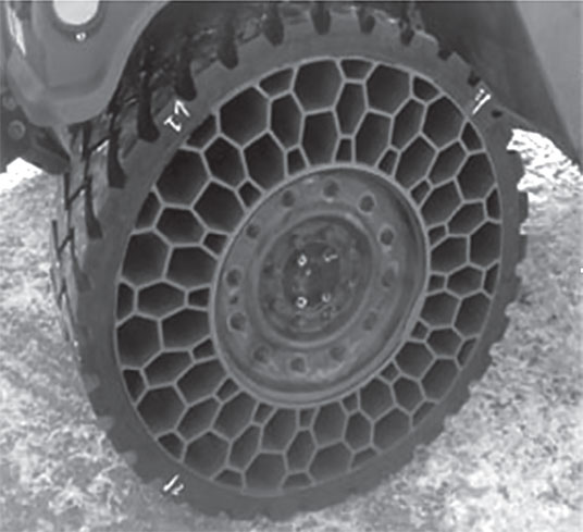 Именно эта фирма предложила самые футуристические шины – в профиль они напоминают велосипедные колеса и представляют собой пространственную конструкцию, целиком выполненную из резины, в которой гибкие «спицы» соединены с гибким «ободом».