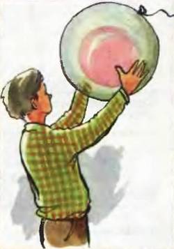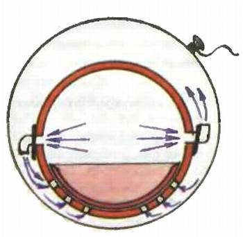 Занятный шар — это шар в шаре. Внутри прозрачного шара из эластичного материала помещается другой, намного меньше диаметром. Этот внутренний шар снабжен клапанами для входа воздуха внутрь и тангенциальными соплами по экватору для выхода воздуха.