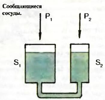 где р — плотность жидкости, a h — высота столба этой жидкости, уравновешивающей силу P1 (вес груза).